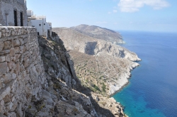 Folegandros is a picturesque island of the Cyclades, it extends over approximately 32 square kilometers, surrounded by high cliffs and has a coastal perimeter of 40 kilometers. Many of its beaches are accessible only on foot, making the island a paradise for lovers of hiking, nature and pristine beaches. This enchanting place offers an authentic Mediterranean experience, steeped in its rural history and wind-shaped landscapes. Folegandros has developed a tourism that respects the rhythms of the island, away from the discos and shops, where guests can appreciate all the surrounding landscape. The island has maintained its authenticity, with a population still linked to rural life and agriculture. The landscape varies from rocky and rugged in the north, to flatter areas in the south. Its three main villages include the port of Karavostasi, Chora and the village of Ano Meria. Chora is a jewel of the Cyclades, with narrow paved streets, white houses and welcoming little squares in the shade of the trees. The city is dominated by the Kastro, a 13th-century Venetian fortress that offers breathtaking views of the island and the surrounding sea. Despite the tranquility of the island, there are small venues where guests can enjoy good music and have fun. An unmissable stop in Chora is a visit to the Panagia church, located on a hill above the city. The short climb offers spectacular views, making sunset an unforgettable experience.