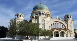 Patras is often just considered the port of arrival for ferries from Italy, a city in transit awaiting boarding. Instead, it is a rich and interesting centre. The Basilica of Sant'Andrea Apostolo preserves the official relics of the saint, patron saint of the city. It is here where he preached Christianity and was martyred and crucified, according to tradition, on an "X"-shaped cross, called the decussate cross or St. Andrew's cross. The current church, built in the 19th century, is from the modern era. The plan is compact, octagon-shaped and each facade is preceded by porticoes with single-lancet windows. The interior is decorated with a large variety of polychrome marbles and the altar is located under the dome, typical of the Greek cross shape.
