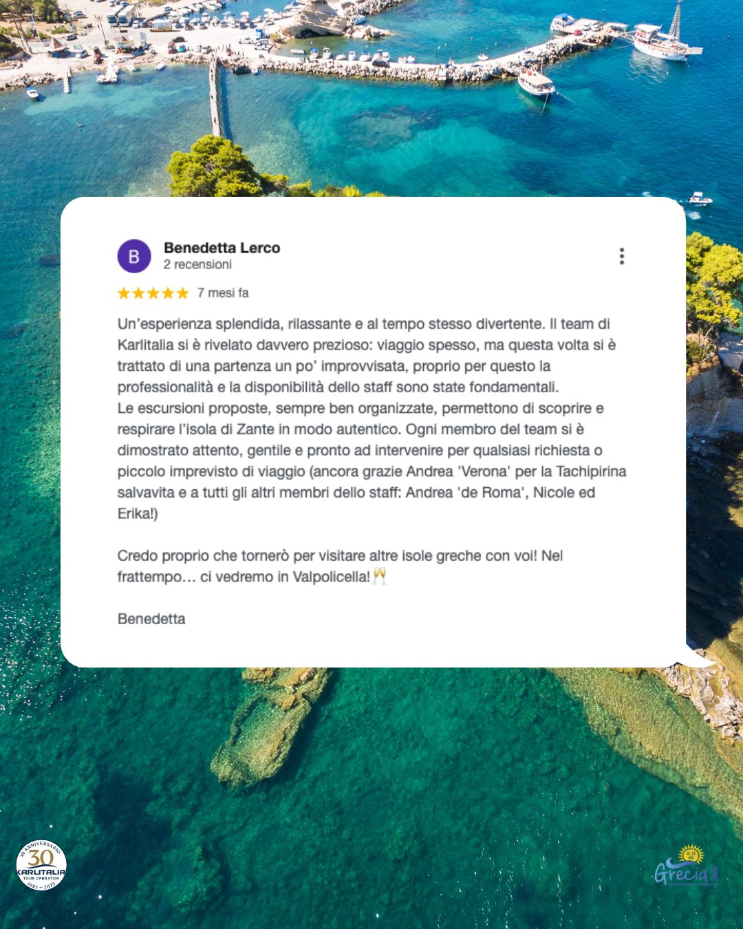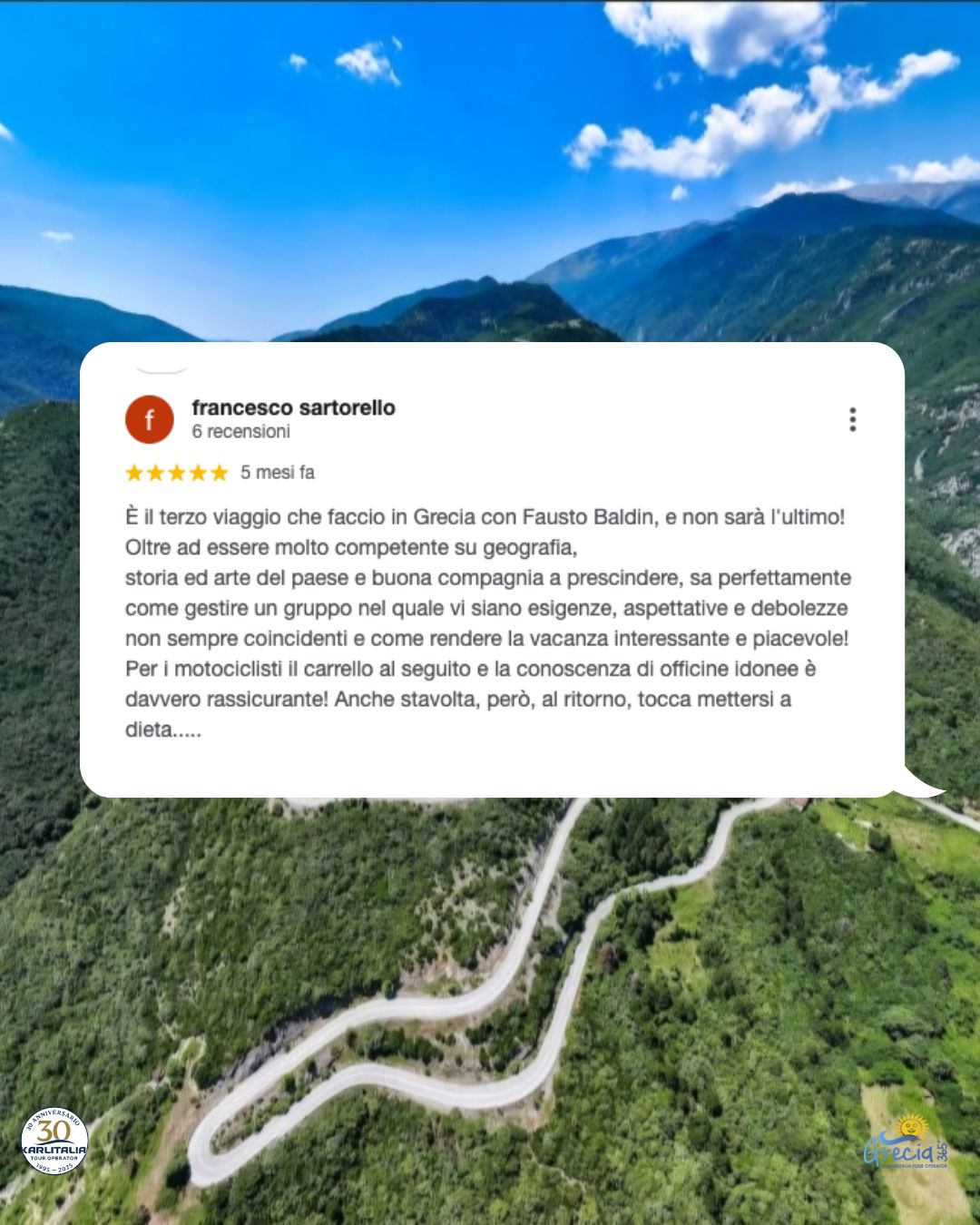 Noi di Karlitalia Grecia365 dal 1995 accompagniamo gli italiani a scoprire la Grecia, quella autentica, fatta di spiagge ancora selvagge, taverne nascoste, sentieri che nessuna guida turistica ha ancora mappato. Quello che proponiamo lo abbiamo visto, vissuto e scelto personalmente. Conosciamo le strutture perché ci siamo stati. Conosciamo le strade perché le abbiamo percorse. Conosciamo i ristoranti perché ci abbiamo mangiato. E conosciamo i problemi che possono capitare perché negli anni li abbiamo visti (e risolti).