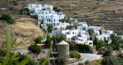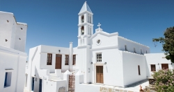 È rimasta ancora quell’isola incontaminata con montagne e vallate punteggiate da chiese ortodosse e cattoliche, dalle abbaglianti case bianchi e i mulini a vento, con le artistiche piccionaie risalenti all’epoca veneziana, con vista unica sull’infinito azzurro dell’Egeo. La dominazione Veneziana, durata circa 350 anni, ha creato i presupposti alquanto singolari perché sull'isola ogni villaggio conti almeno due chiese, quella Ortodossa e quella Cattolica.