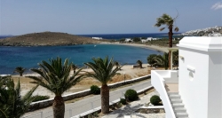 Kionia è una spiaggia di sabbia dove si susseguono ottime tavernette e offre una fantastica vista sull'isola di Syros. Ag. Sostis, Ag. Kiriaki e Ag. Ioannis, tutte spiaggette a est del capoluogo, sono calette riparate dai venti da nord, con sabbia compatta e fondale poco profondo, qualche tavernetta e qualche ombrellone, tutte con splendido panorama su Mykonos.